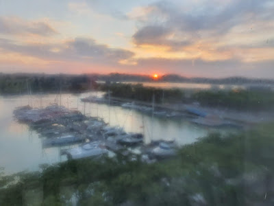 Beautiful sunrise from the room. Like a painting with the mist from the air conditioning in my room.