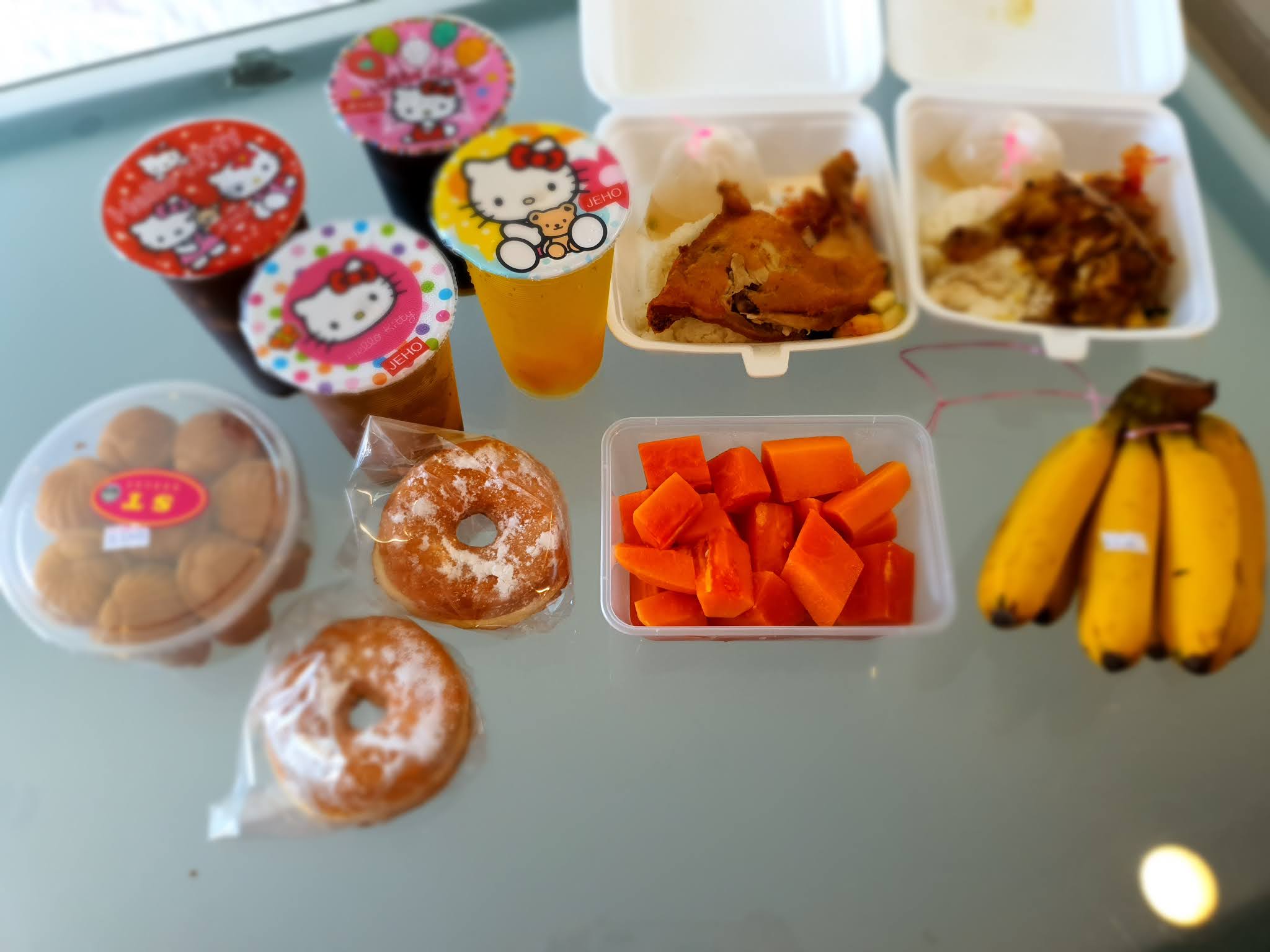 Tabao from the hawker satay, bbq chicken wings, famous nasi lemak beef rendang and deluxe set. Watching EPL in the room.
