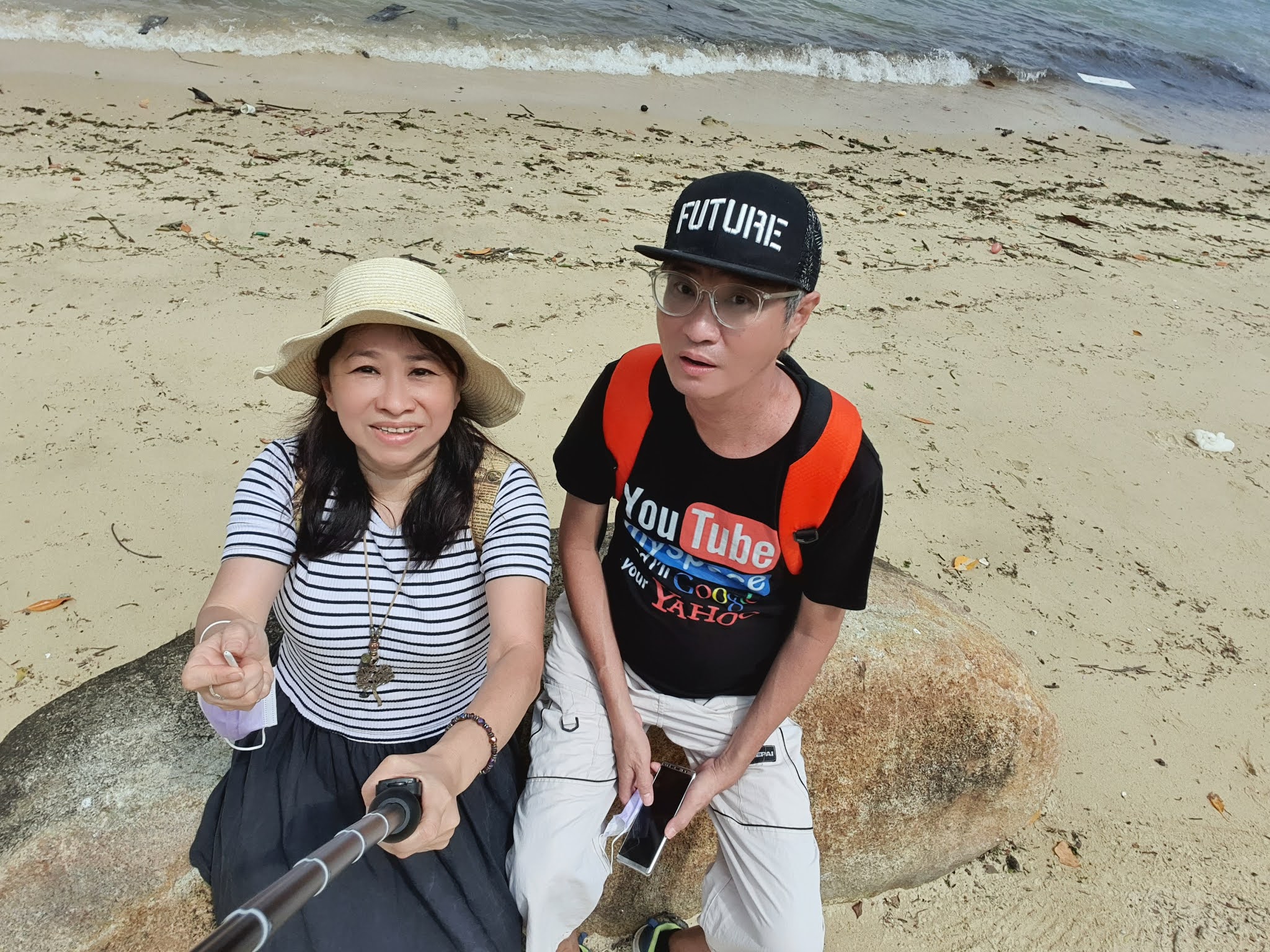 Going to the kelong later. Relaxing at the beach near to the inscription of the island sculpture.
